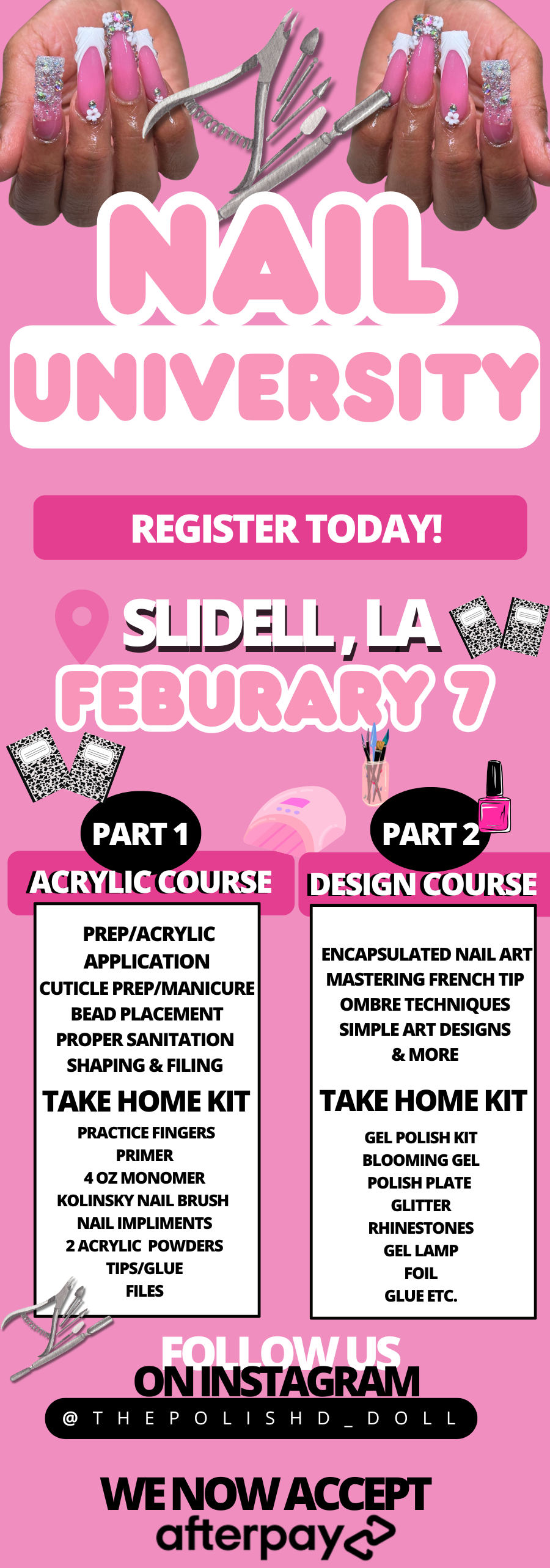It all begins with an idea. Maybe you want to launch a business. Maybe you want to turn a hobby into something more. ENROLL WITH NAIL UNIVERSITY, & Turn Your Ideas into Reality! I Am a 7 year Licensed Nail Tech that Takes Pride in Teaching You DOLLS the Right Way !